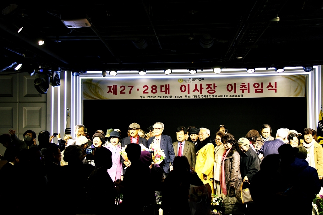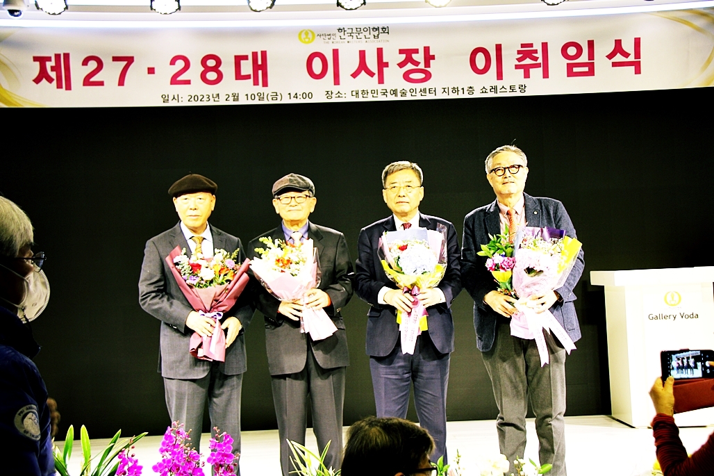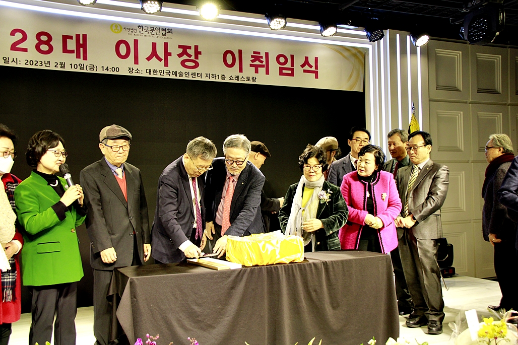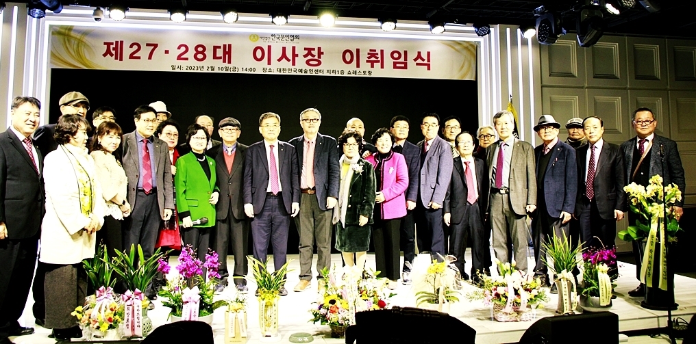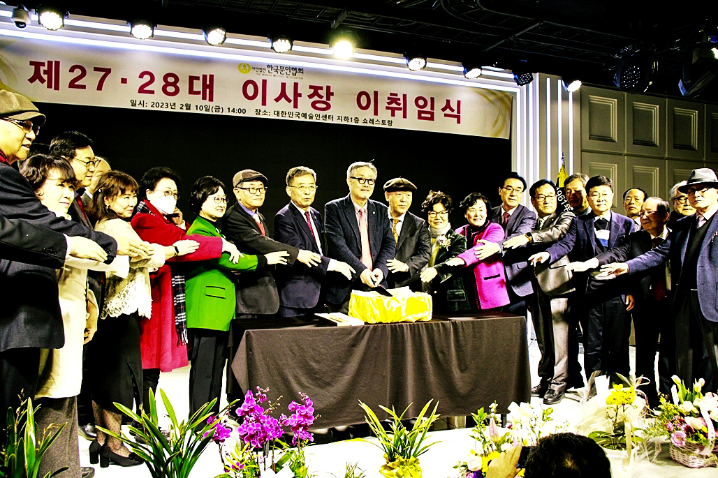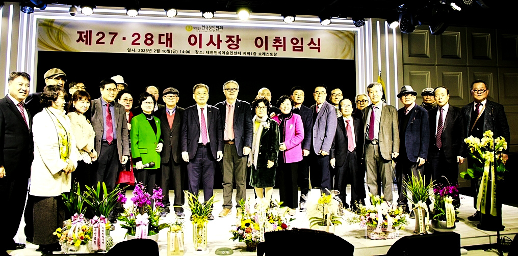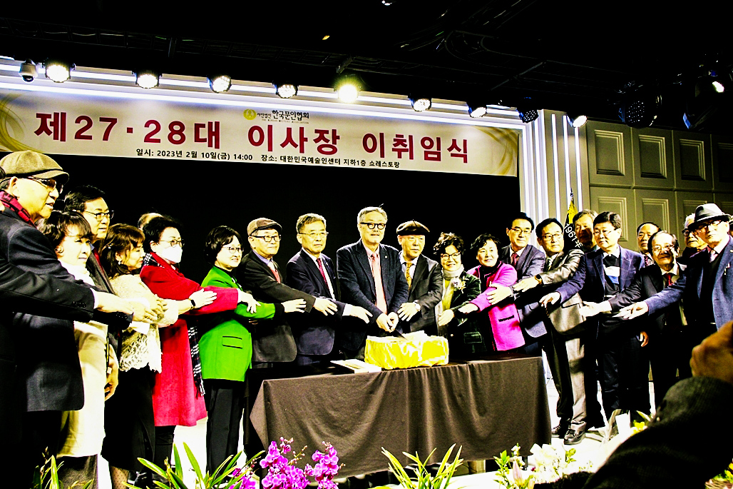 한국문협 제27대·28대 이사장 이·취임식이 2023년 2월 10일(금) 오후 2시부터 목동 대한민국예술인센터 B1 공연장에서 실시되었다. 아울로 부이사장에 강정화(시)·구재기(시)·노창수(시)·김민정(시조)·이은집(소설)·장호병(수필)·윤영훈(아동문학). 분과회장에 박영하(시)·권남희(수필)·홍성훈(아동문학)·강경호(평론)·임성구(시조)·김운중(민조시)·김영두(소설)·김대현(희곡)·김정학(청소년) 임원들이 취임하였다. (평론분과 강경호 평론가, 시조분과 임성구 시조시인, 민조시분과 김운중 민조시인, 소설분과 김영두 소설가, 희곡분과 김대현 희곡작가, 청소년문학분과 김정학 청소년문학가가 각 분과 회장에 무투표 당선되어 취임하였다.)
