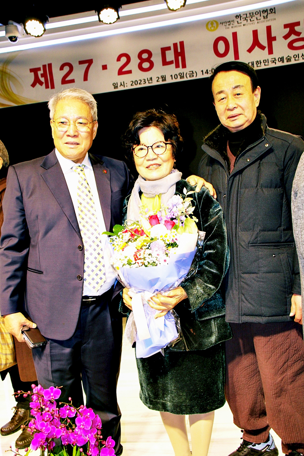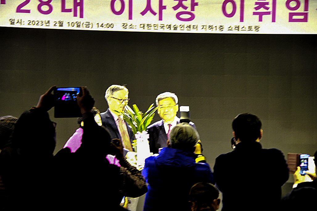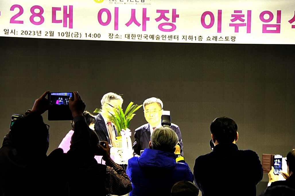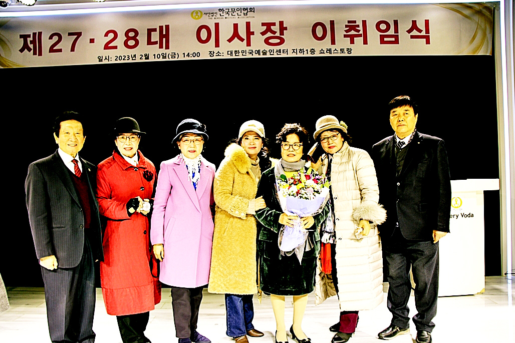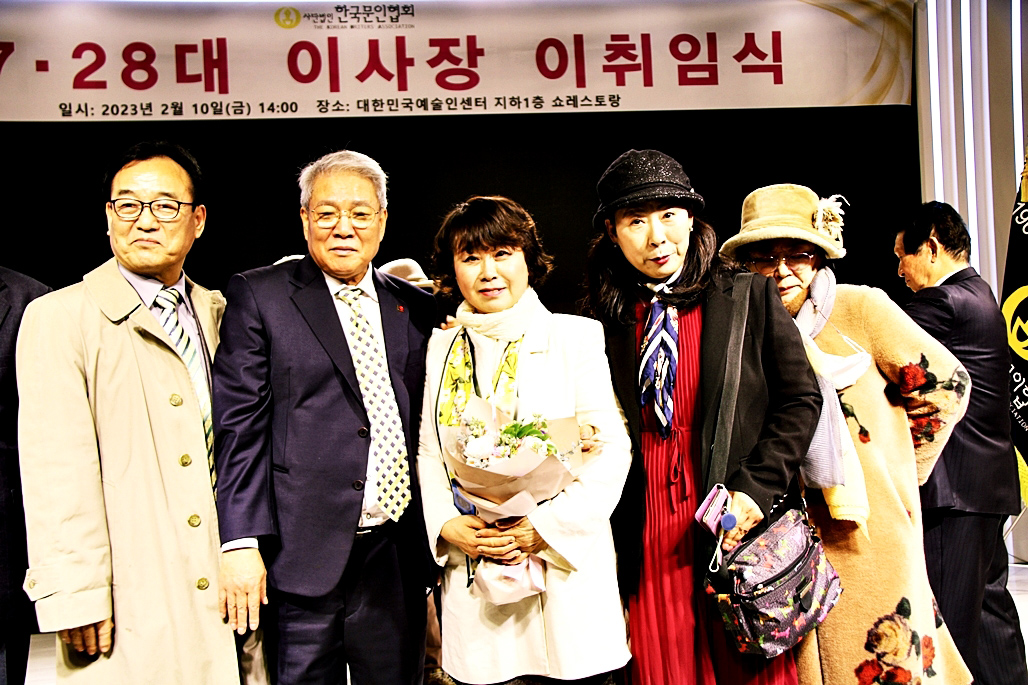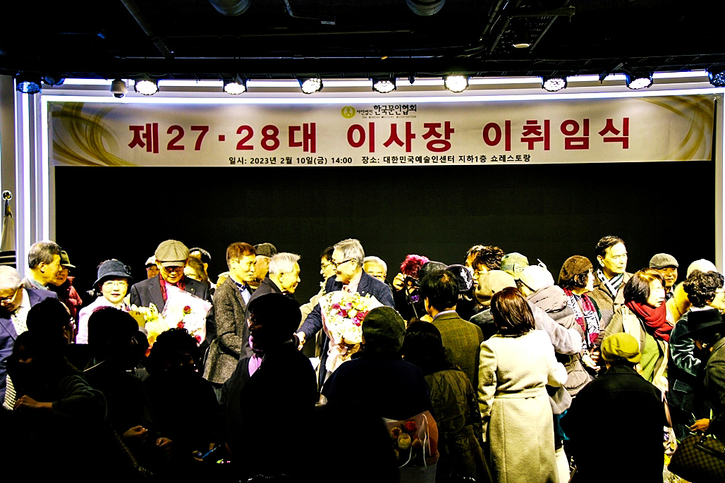한국문협 제27대·28대 이사장 이·취임식이 2023년 2월 10일(금) 오후 2시부터 목동 대한민국예술인센터 B1 공연장에서 실시되었다. 아울로 부이사장에 강정화(시)·구재기(시)·노창수(시)·김민정(시조)·이은집(소설)·장호병(수필)·윤영훈(아동문학). 분과회장에 박영하(시)·권남희(수필)·홍성훈(아동문학)·강경호(평론)·임성구(시조)·김운중(민조시)·김영두(소설)·김대현(희곡)·김정학(청소년) 임원들이 취임하였다. (평론분과 강경호 평론가, 시조분과 임성구 시조시인, 민조시분과 김운중 민조시인, 소설분과 김영두 소설가, 희곡분과 김대현 희곡작가, 청소년문학분과 김정학 청소년문학가가 각 분과 회장에 무투표 당선되어 취임하였다.)