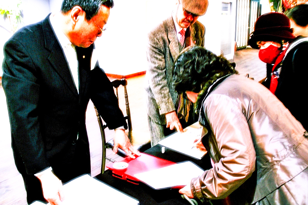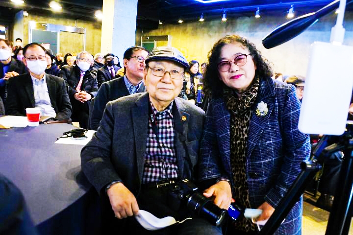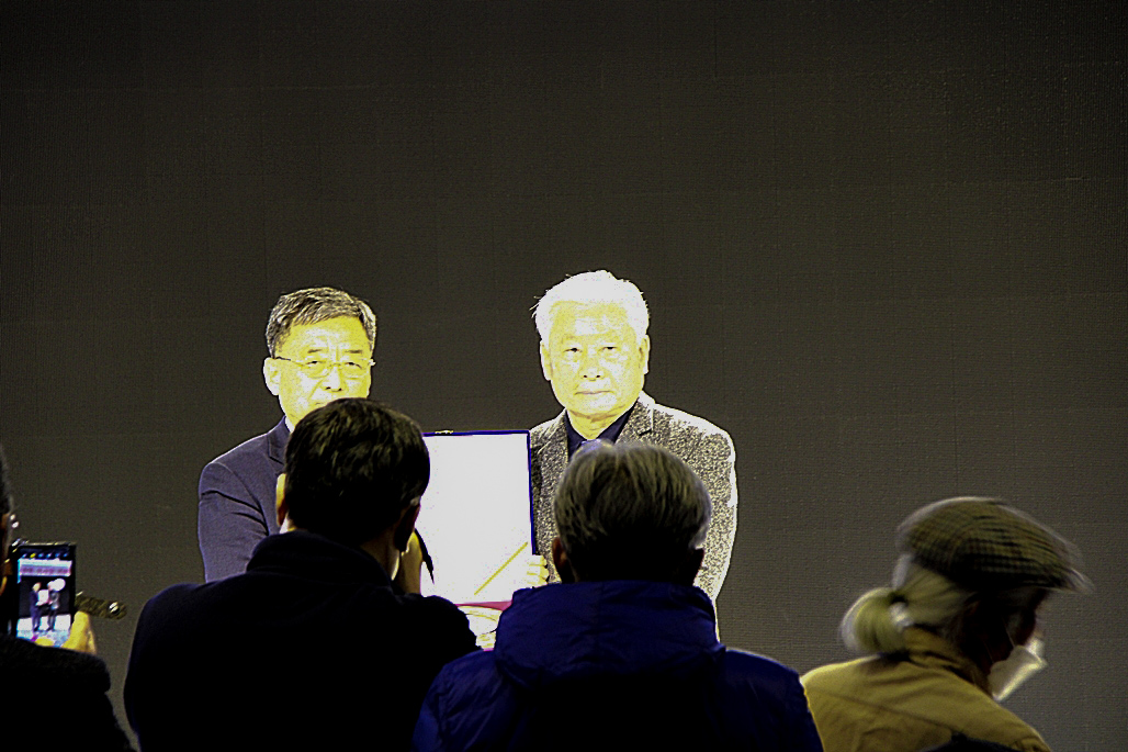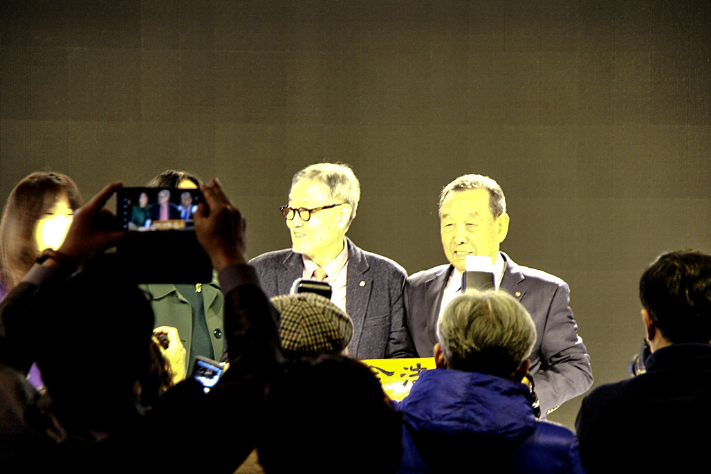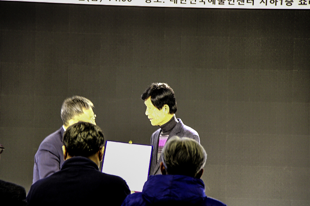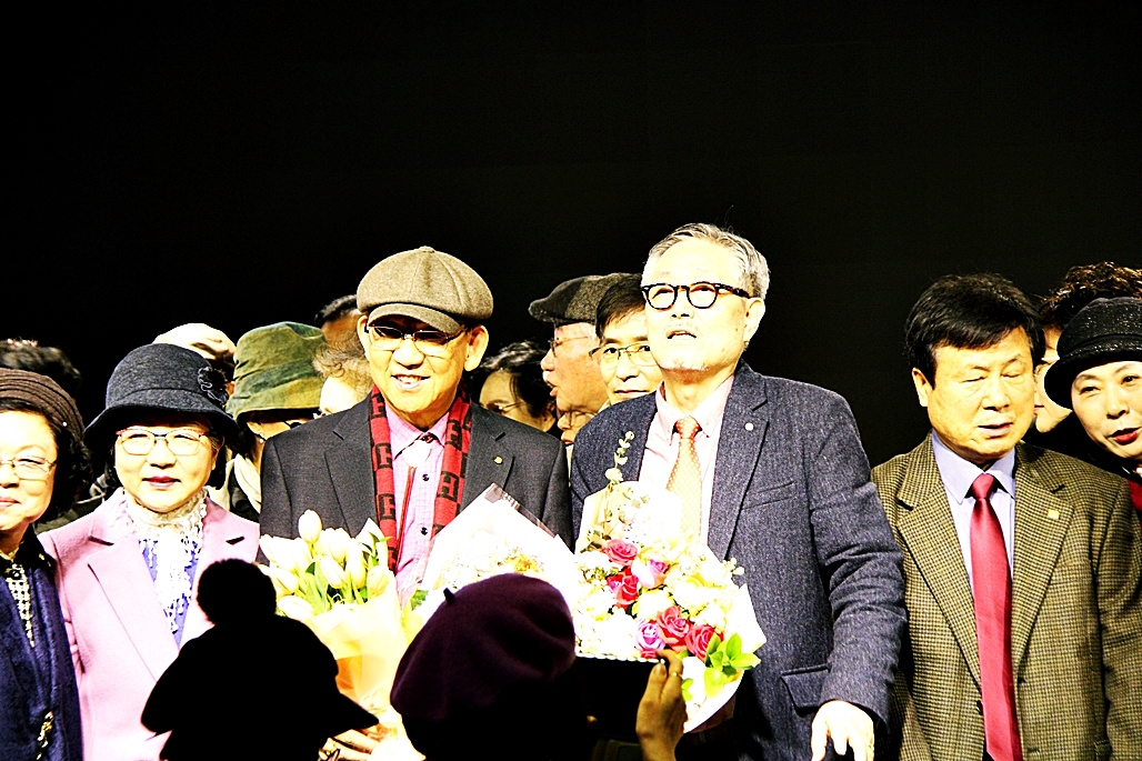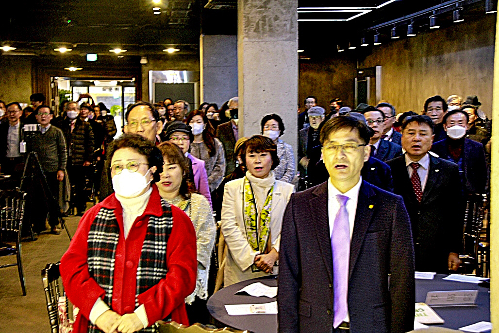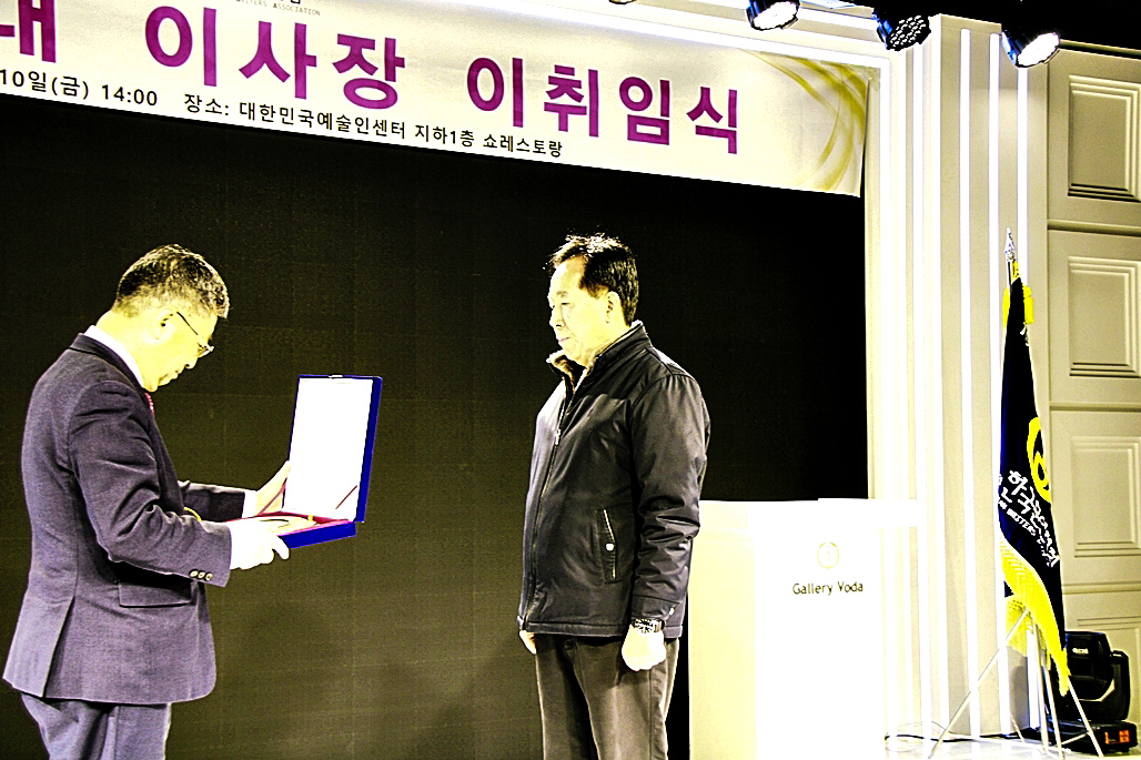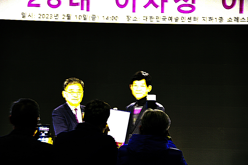 다음 순서는 28대 김호운 취임 이사장이 퇴임하시는 이광복 이사장께 행운의 열쇄인 기념품을 전달하였다. 김호운 이사장은 한 시인으로 부터 한문으로 '김호운 이사장'의 명패를 제작하여 전달하는 깜짝 이벤트도 있어서 박수를 보냈다.