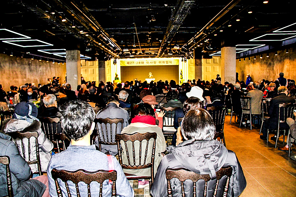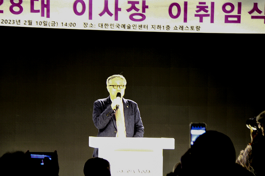 2월 10일 이사장 이취임식은 오후 2시가 되자 이혜선 부이사장의 사회진행으로 개회가 선언되고 국민의례가 있었으며 경과보고로 문효치 임원선거관리 위원장의 보고가 있었다. 그는 보고에서 지난1월28일 서울 양천구 목동 대한민국 예술인센터에서 제 62차 정기총회를 가지며 제28대 이사장 선거개표에서 투표수 총 6,974표 가운데 기호 2번 김호운ㄱ 후보가 4,032표를 얻어 당선되었음을 선거결과 발표 하였다.