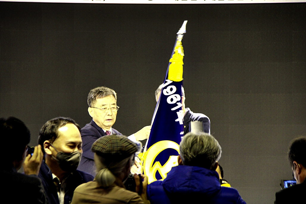 기념품(행운의 열쇄) 전달(28대 김호운 이사장이 27대 이광복 이사장께)