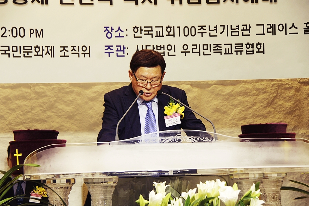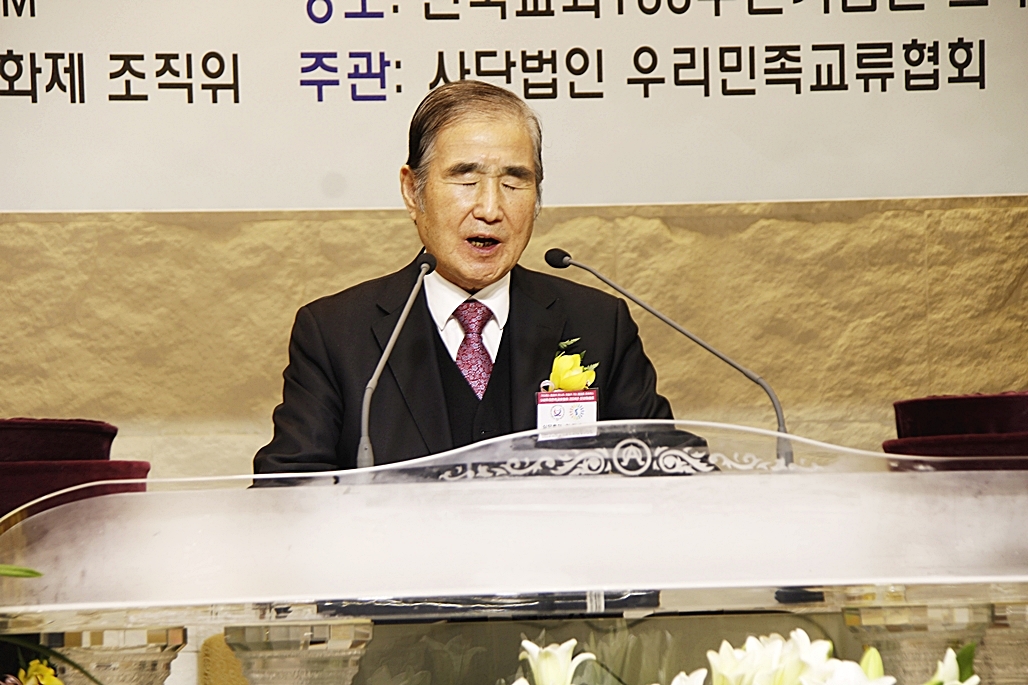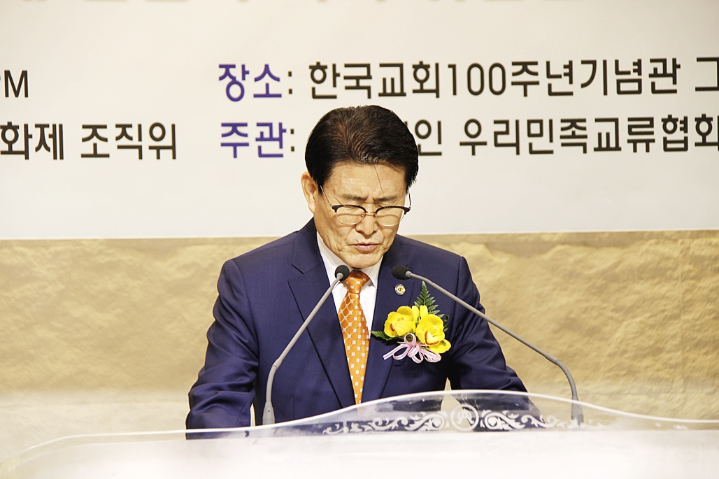 역사를 주관하시는 하나님이 평화통일을 이루워주실 줄 믿는다. 하나님이 함께하시면 못 이루어질 것이 없으니 평화통일을 이루어질 수 있으리라 믿는다”라고 역설하였다..