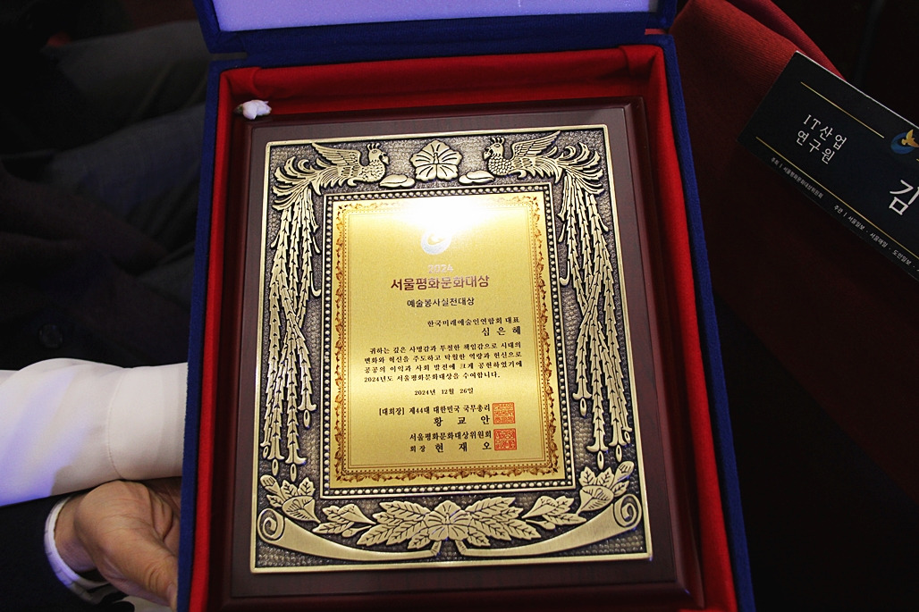 서울평화문화대상은 각 분야에서 공헌한 인사를 선정시상함으로써 사회 발전에 앞장서는 선도자를 발굴하고 격려하기 위해 수여하는 상으로서 심은혜는 한국미래예술총연합회의 이사장으로서 활동하는 문예인으로 시인이며 시낭송가 이다.