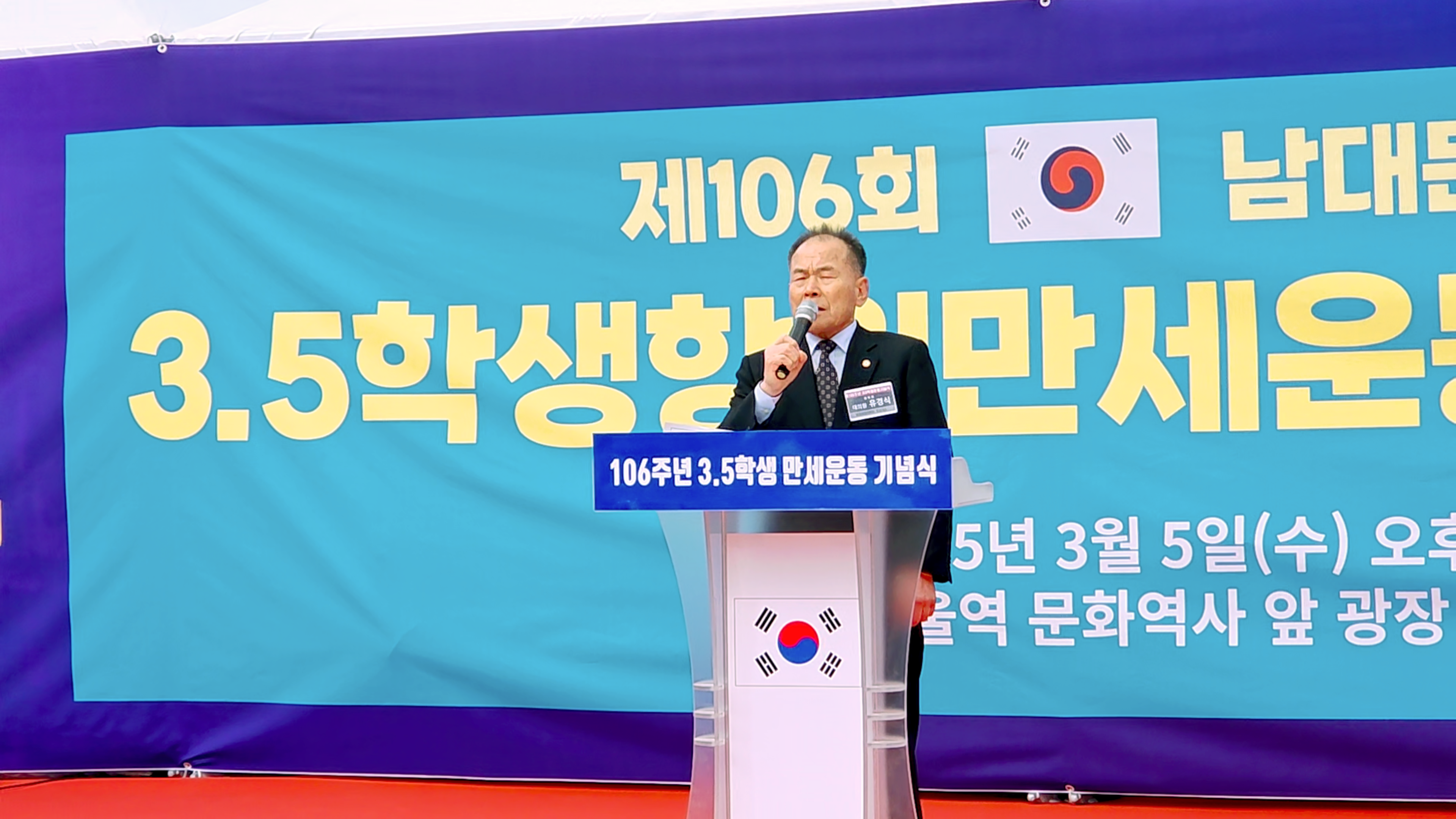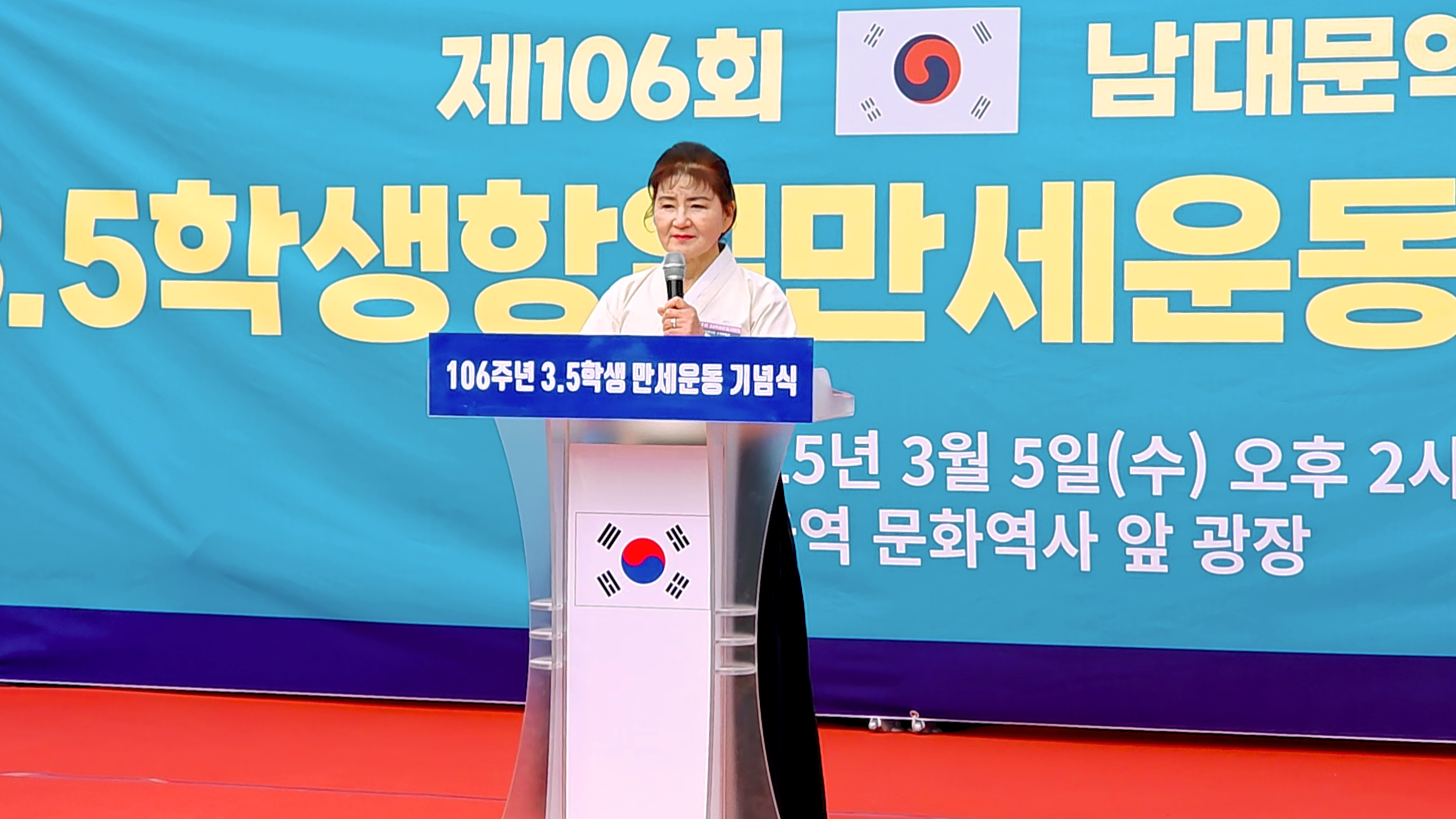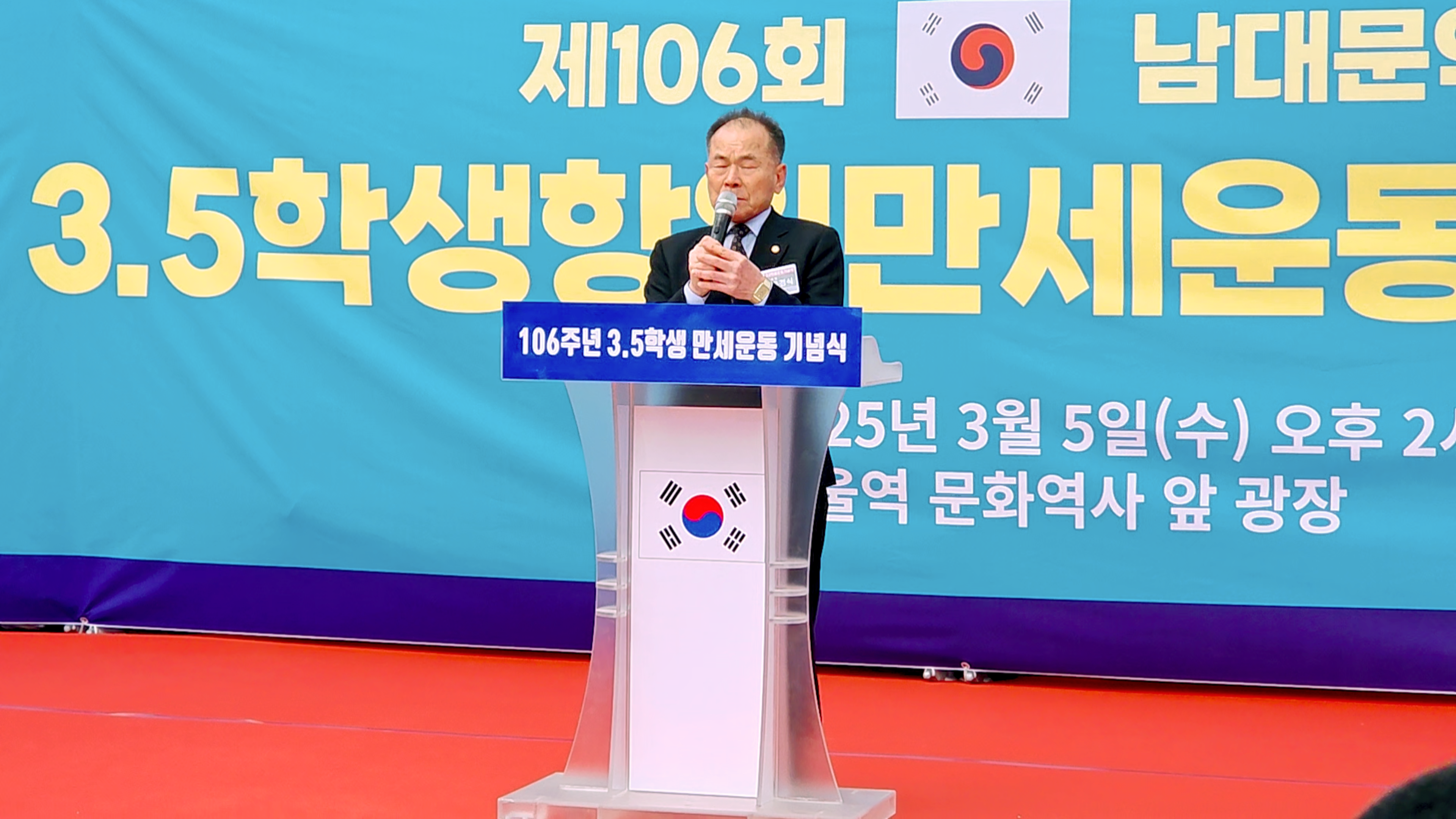 제106주년 3.5학생항일만세운동 기념식이 2025년 3월 5일(화)오후 2시부터 서울역 문화역사 광장에서 개최되었다. 주최는 독립유공애국지사 유족회이며 주관은 3.5학생항일만세운동기념 사업회에서였으며 후원은 국가보훈부, 서울특별시의회에서였다. 협력 상로서는 한국문학사랑신문(이사장: 정해정) 외 12개 단체였다.