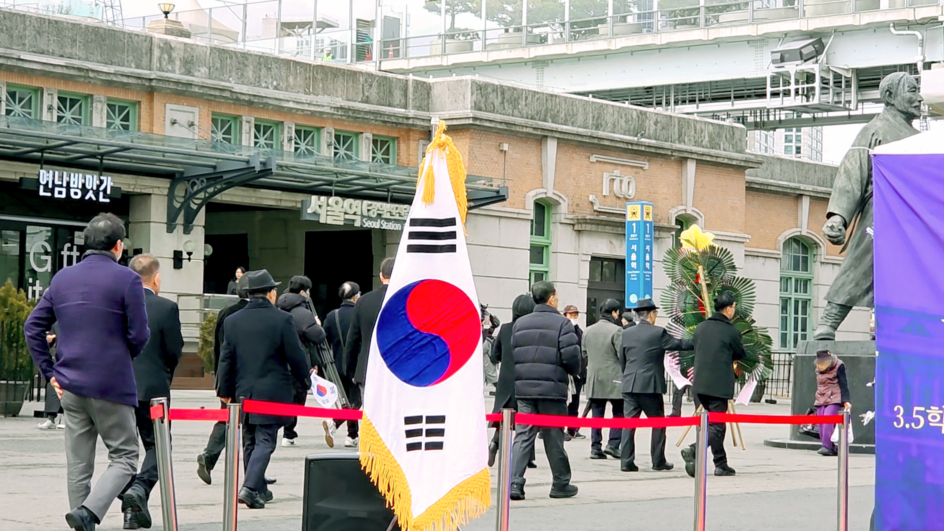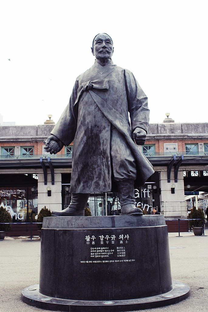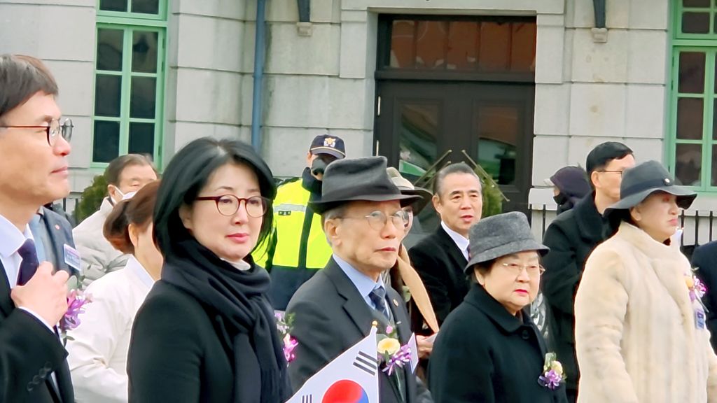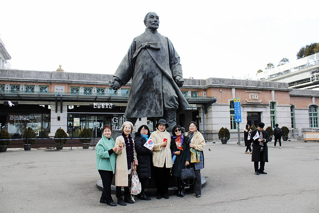 영령께 기념헌화하기 위해 강우규의사 동상 앞으로