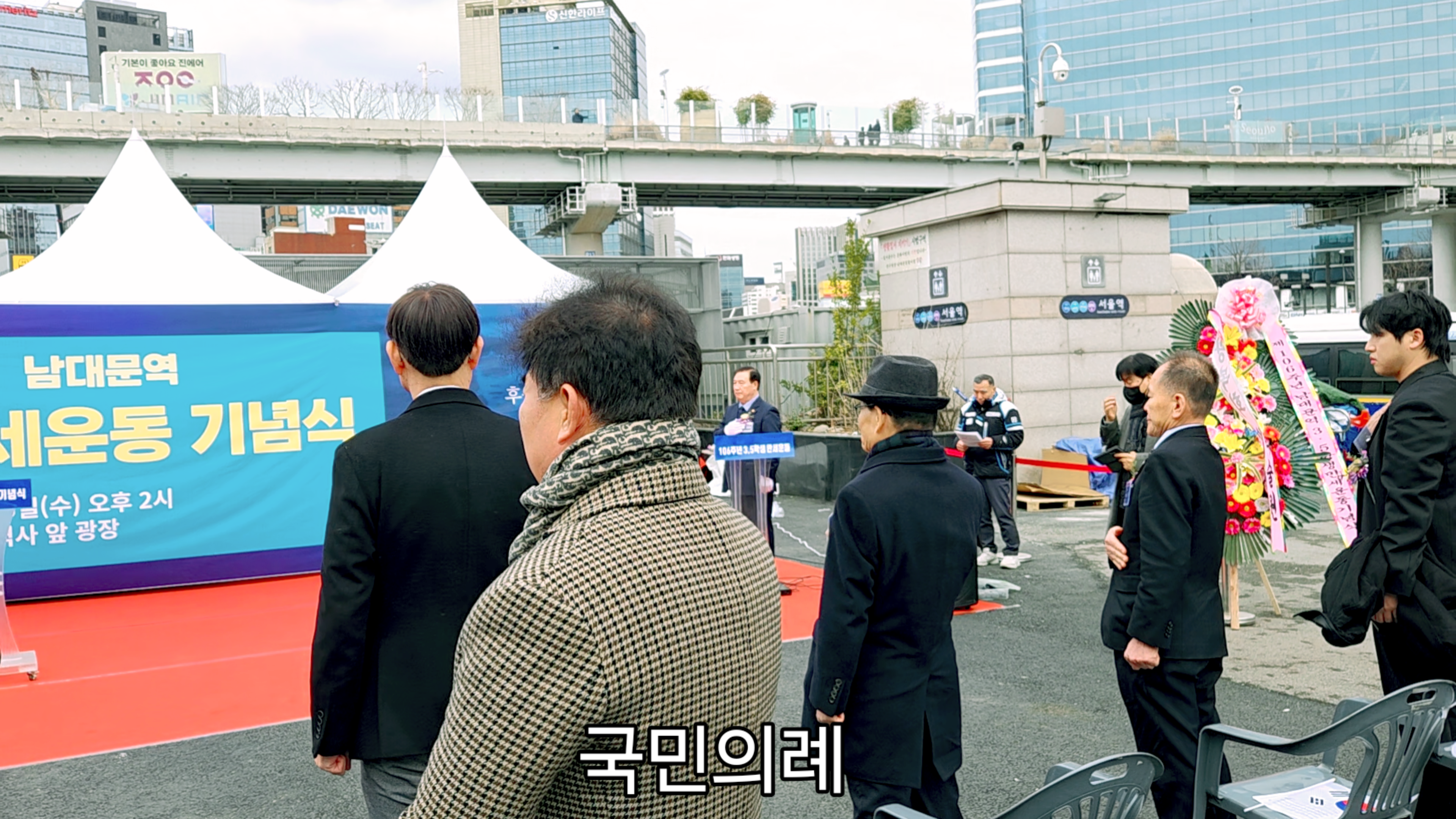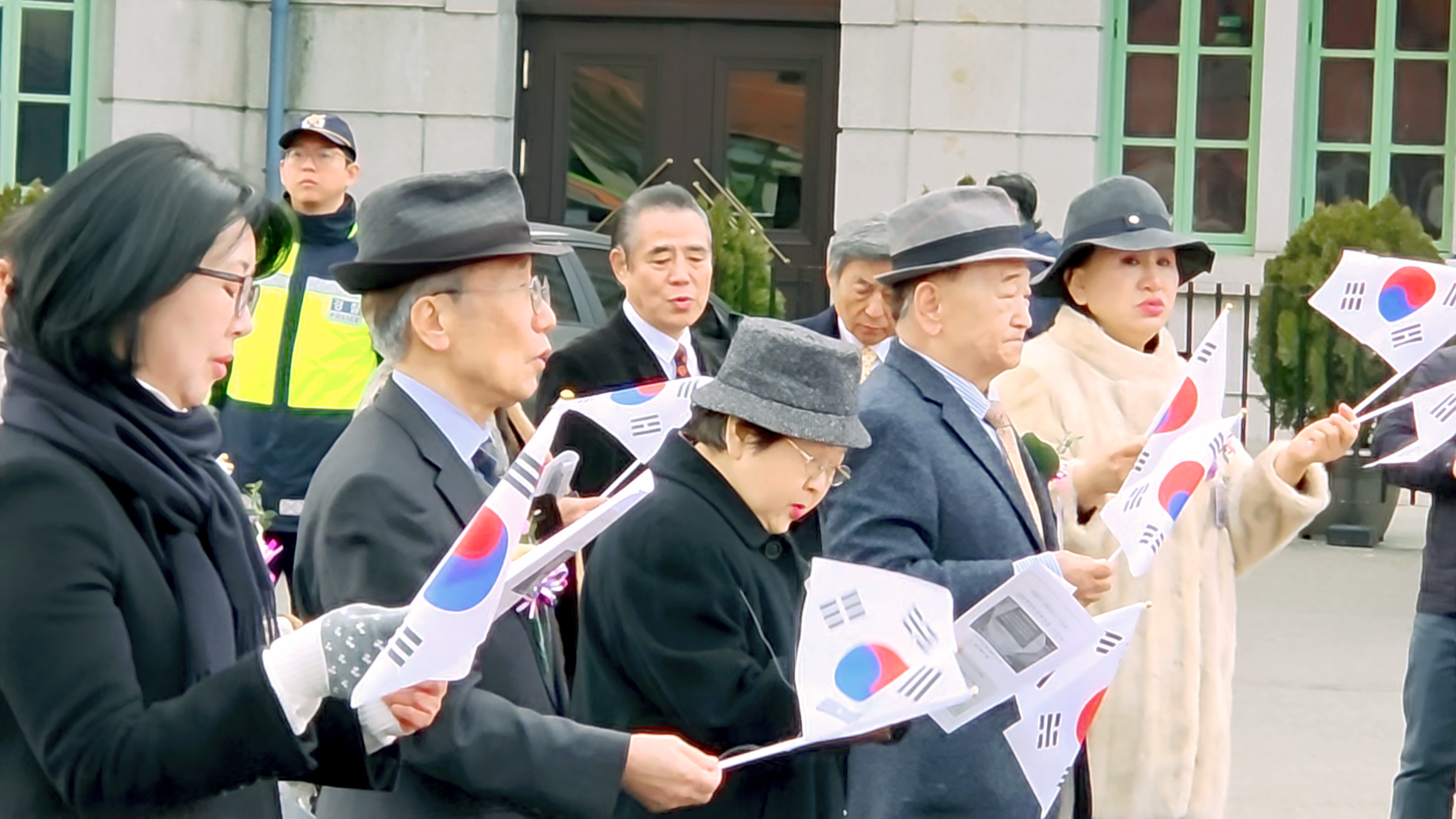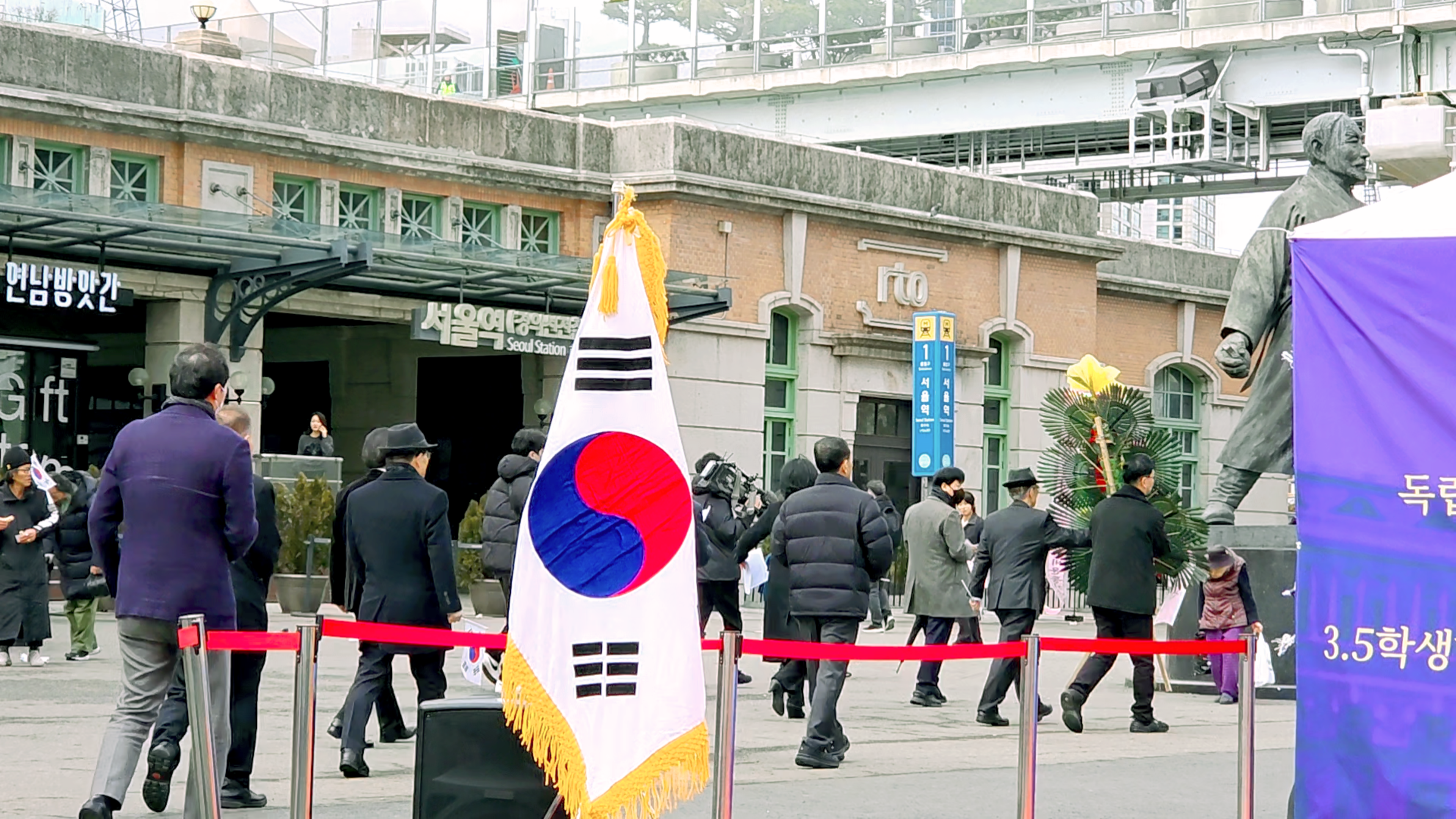 영령께 기념헌화하기 위해 강우규의사 동상 앞으로