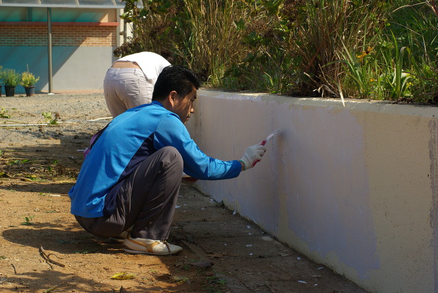 퍼티작업은 이완규원장님 가관현님, 박구용님, 함안나님, 강희대 교감선생님