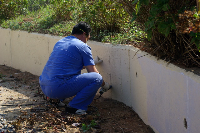 벽면에 도색을 하기전에 울퉁불퉁한 표면을 갈아내고 홈메우기 작업을 하는데