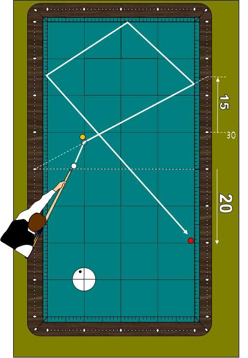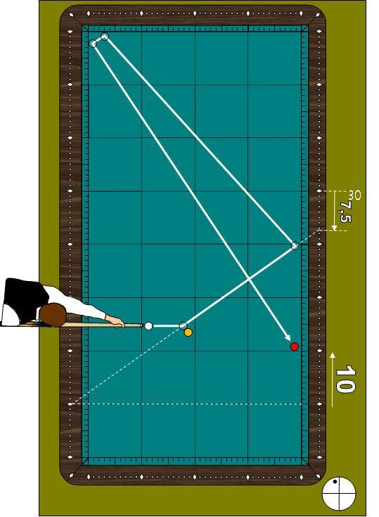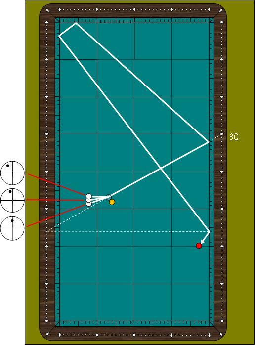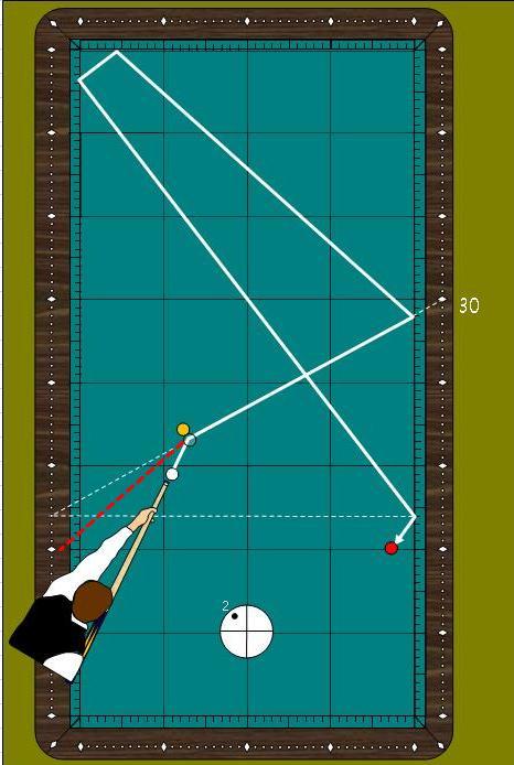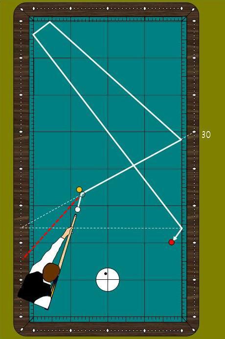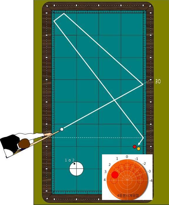 <활용도2> 4포인트에서 1쿠션 30포인트로 향하면 건너편 4포인트에 도착을 하므로