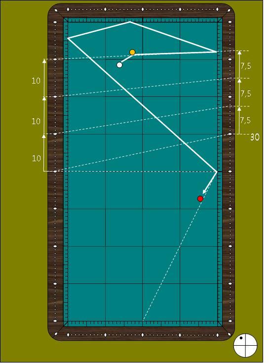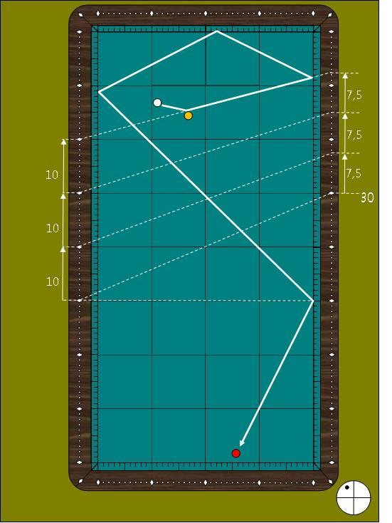 "30포인트를 1쿠션으로 입사하면 수구 출발점 건너편의 대칭점에 도착 한다"는 아주 쉬운 방법이며