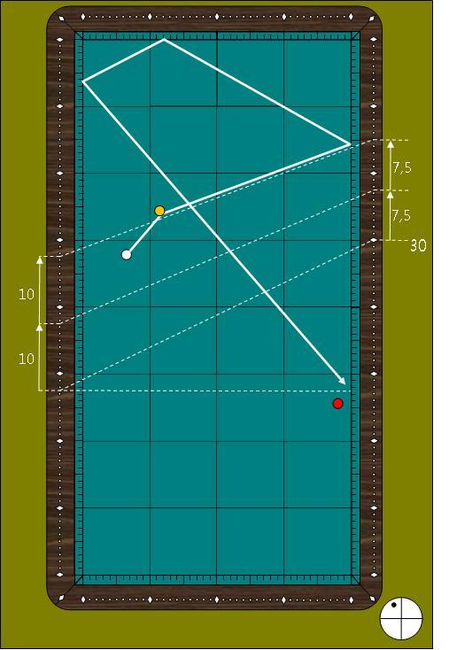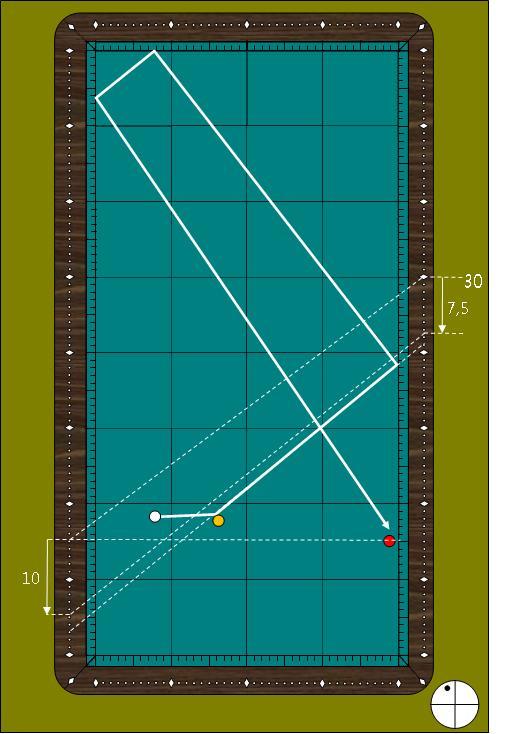 이로 인해 수구의 출발점이 약간 +측으로 확장되므로 팁수는 빈쿠션 +3팁에서 +2팁으로 줄여야 됩니다.