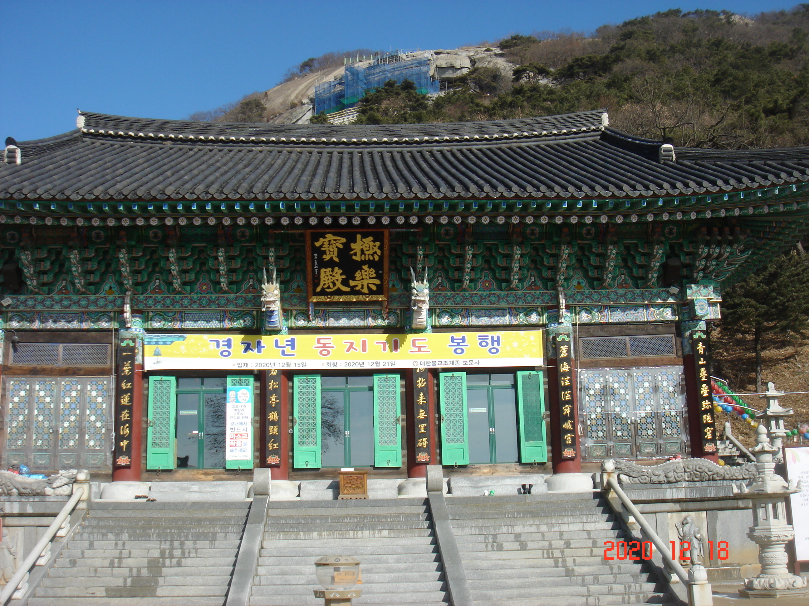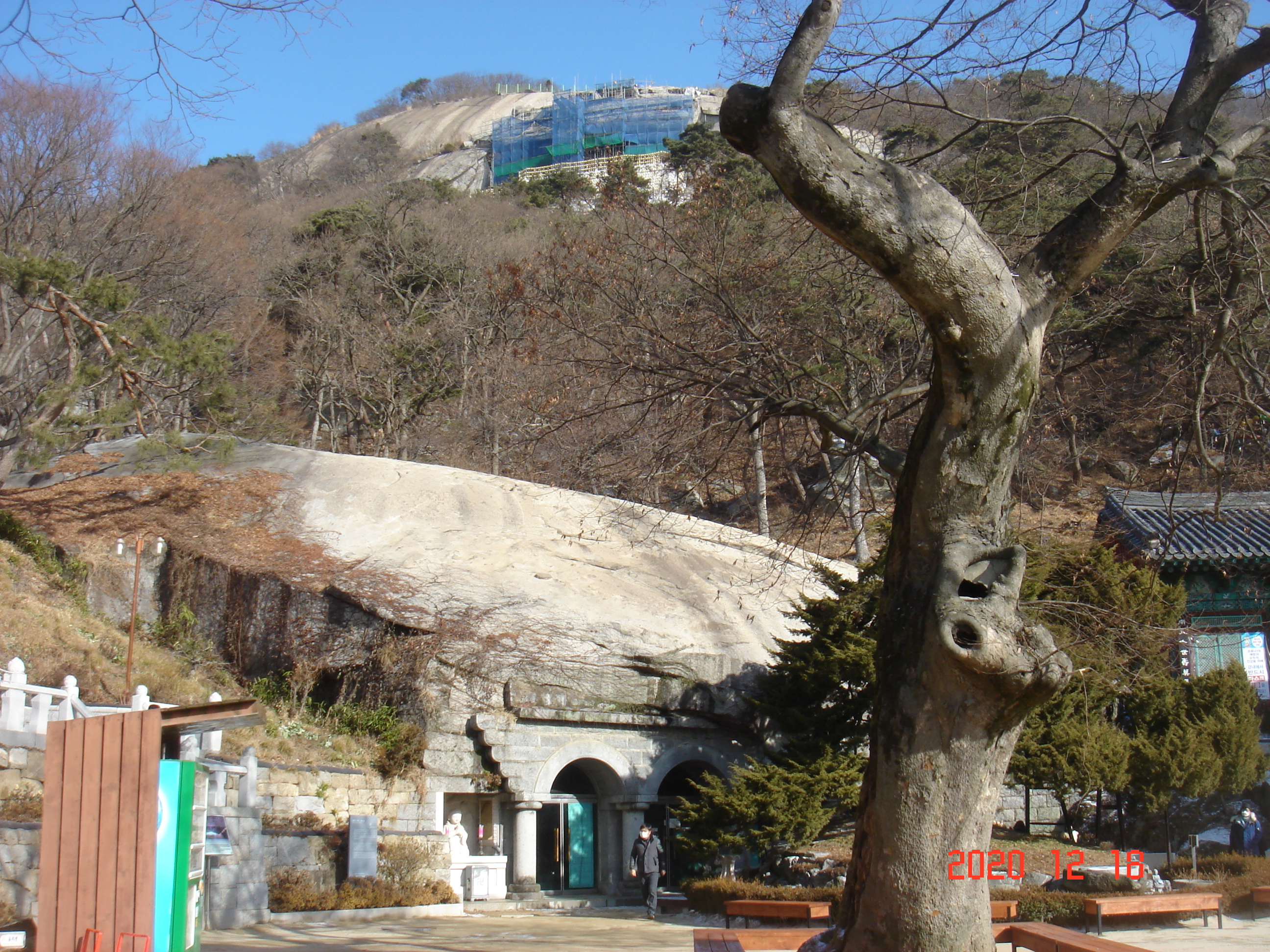 절윗쪽 바위에 있는 곳에 보수 공사를 하는 중이였습니다.