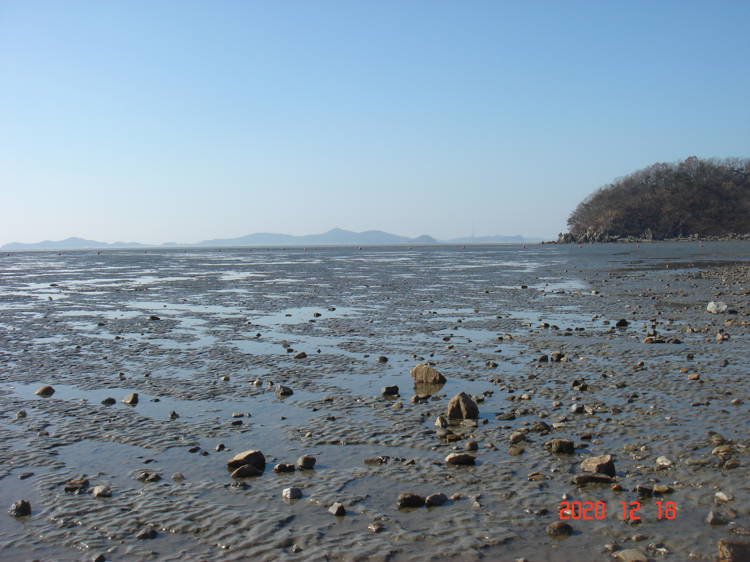 왼쪽의 조그만 섬들이 교동도 이고 사진에는 안보이지만 뒷쪽이 북한 (北朝鮮) 입니다.