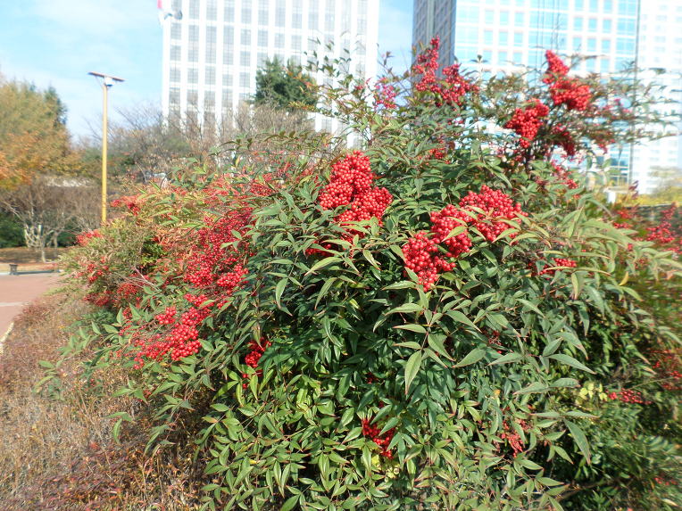 *대구 국채보상운동기념공원에 겨울의 보석 봄까지 열매가 달려 있고 신선이 먹는식품 남천 열매가 먹음직스럽게 익었습니다~~~