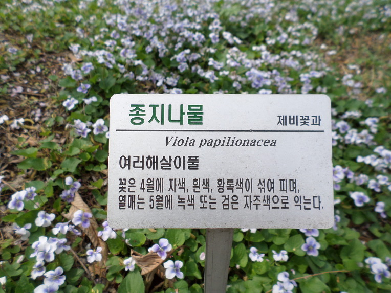 *대구수목원에 나물로 먹고 잎이 종지모양으로 생긴 귀화식물 종지나물(미국제비꽃)이 군락을 이루며 흐드러지게 피었습니다.