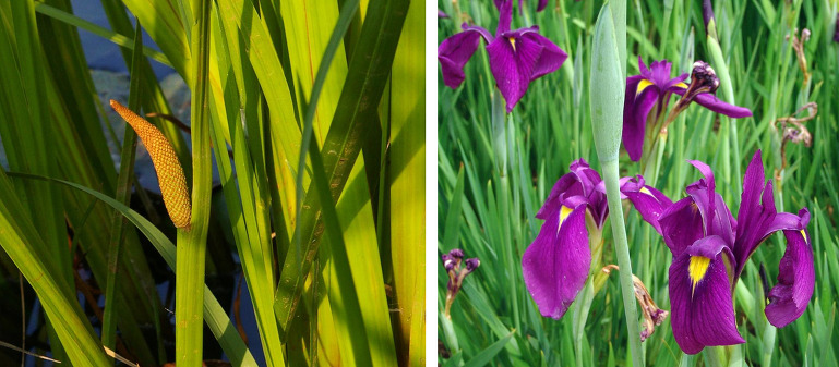 창포는 천남성과(科)이나 꽃창포는 붓꽃과이여서 과(科)부터가 다르다. 단지 잎이 비슷할 뿐이다. 꽃은 초여름 비슷한 시기에 피지만 생김새와 색깔이 완전히 다르다.