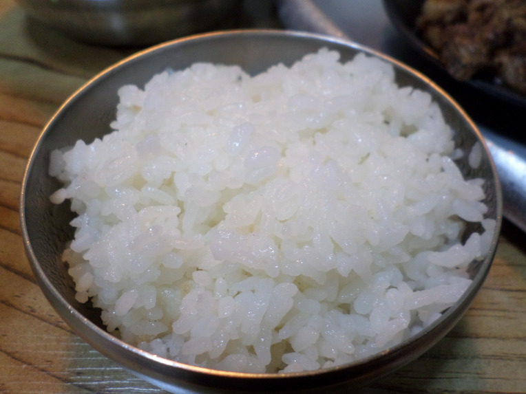 하얀 백미밥에는 쌀알이 살아 있습니다.
