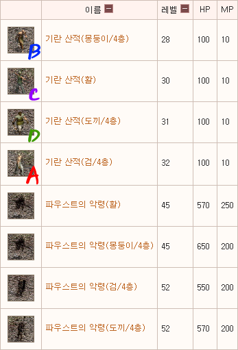 C - 기란 산적(활), D - 기란 산적(도끼)