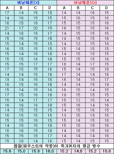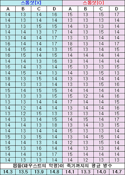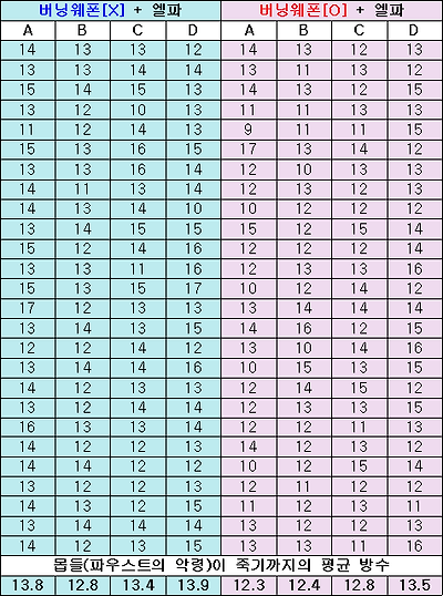 세시간밖에 사냥할 수 없는 사냥터의 특성상 하루에 측정할 수 있는 횟수가 제한적이었고 이외에도 필자의 게임 플레이 시간과 게임 밤낮 시간도 고려해야 했기 때문에 측정하는데 많은 시간이 들었다. 비로소 실험을 시작한지 한달이 지난 지금에서야 실험을 끝마칠 수 있었다. 어쩌면 이미 대부분의 사람이 알고 있는 내용일지도 모르겠다 ㅠㅠ