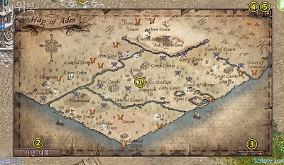 ② 지역: 지도에 표시하고 싶은 지역을 선택할 수 있는 버튼으로, 클릭하면 아덴 대륙을 비롯한 모든 지역이 표시된다.
