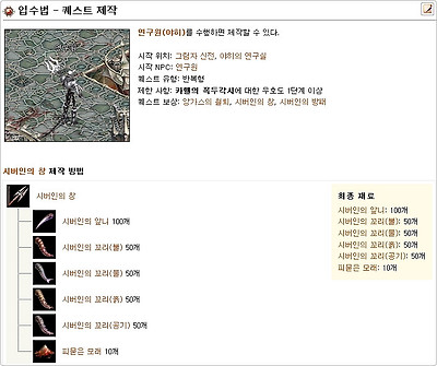 시버인의 창도 카헬의 꼭두각시의 제작 퀘스트이기 때문에 방패의 제작 과정과는 별반 다른 부분은 없는 것 같습니다.