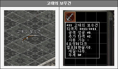 놀라운 기본 타격치를 자랑하는 고대의 검과 고대의 대검! 한손활의 대표 고대의 보우건!