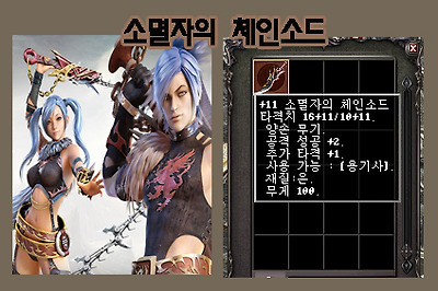 소멸자의 체인소드는 용기사에게 특화된 전용 무기인데요. 16/10의 기본 타격치와 추가타격+1, 공격성공+2의 옵션을