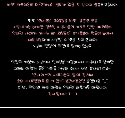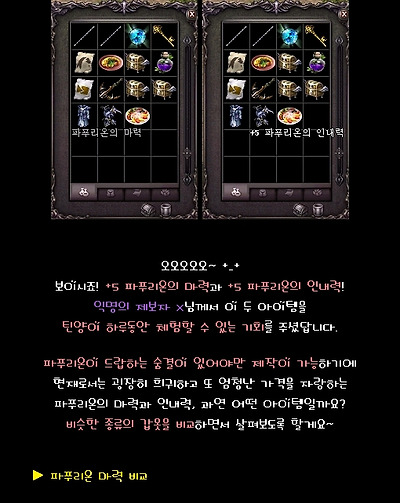 [[nc서버지기]]파푸리온의 마력&인내력 착용기 작성자[카페]마스타|작성시간11.06.11|조회수293 목록 댓글 0 글자크기 작게가 글자크기 크게가 다음검색 현재 게시글 추가 기능 열기 북마크 공유하기 신고 센터로 신고 댓글 댓글 0 댓글쓰기 답글쓰기 댓글 리스트