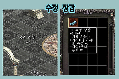 존재하고 있다는 것을 확인할 수 있었습니다. +9 수정 장갑은 왠만한 갑옷과 맞먹는 방어력이라