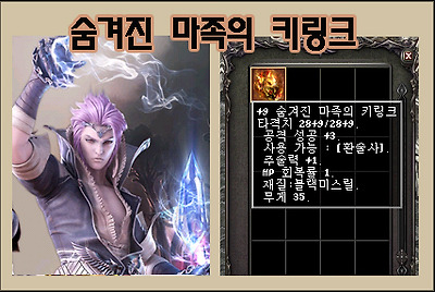 숨겨진 마족의 키링크는 공격력 28/28 , 공격 성공 +3, SP +1, MP 회복 +1, MP 회복 +1 그리고 마족의 무기들이 공통적으로 가지고있는 이블 트릭의 옵션을 지니고 있습니다. 숨겨진 마족의 키링크는 환술사의 전용 무기로 마법 대미지가 기반인 기존의 리니지에서 선보인 아이템들과는 다른 새로운 개념의 무기입니다.