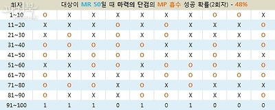 ② 대상이 MR 50일 때 MP 흡수의 성공 확률 1회차 - 48%