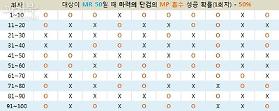 ① 대상이 MR 50일 때 MP 흡수의 성공 확률 1회차 - 50%