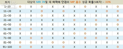 ① 대상이 MR 70일 때 MP 흡수의 성공 확률 1회차 - 33%