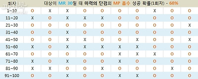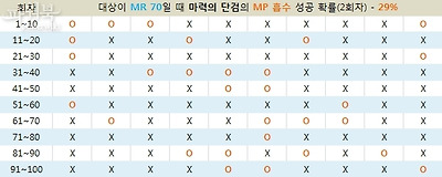 ② 대상이 MR 70일 때 MP 흡수의 성공 확률 1회차 - 29%
