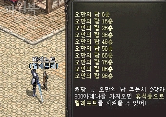 예를 들면 오만의 탑 16층으로 이동하기 위해서는 오만의 탑 11층 이동 주문서 2장과 300아데나가 필요한 방식이다.