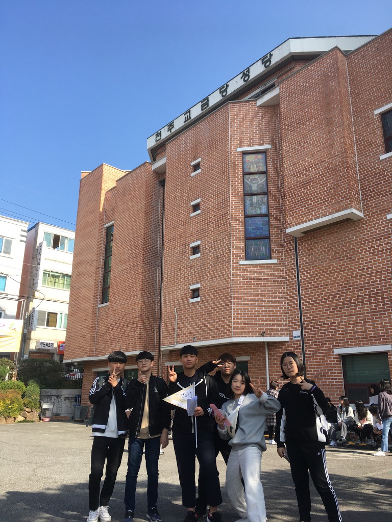 1모둠 친구들은 세번째 본당을 마지막 도착지인 저전동성당을 미리 뽑아 먼저 도착했어요!