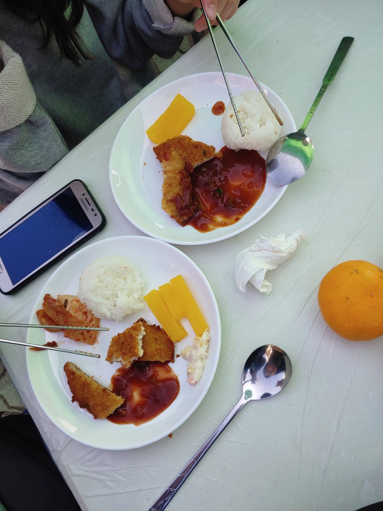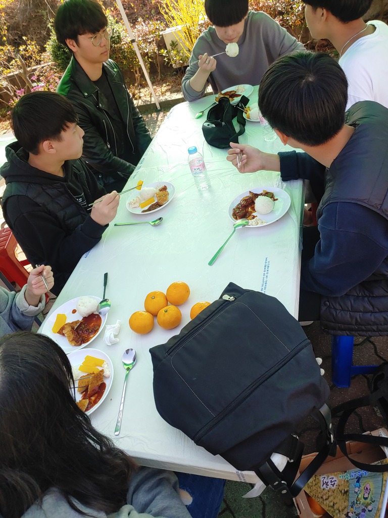 미션성공후 2모둠의 점심은 본당에서 해주셔서 맛있는 돈까스를 친구들이 맛있게 먹었어요!