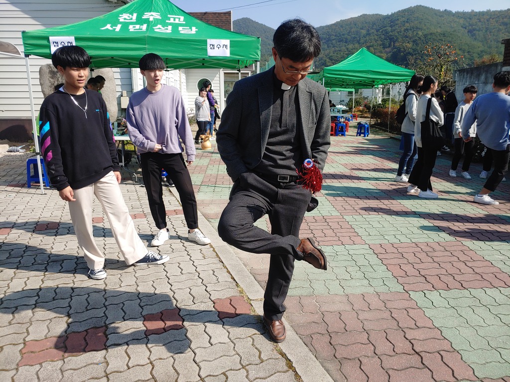 구경하시던 국장신부님께서 스무개 이상을 제기차주셔서 저희가 100개를 훨씬 넘을수 있었어요!