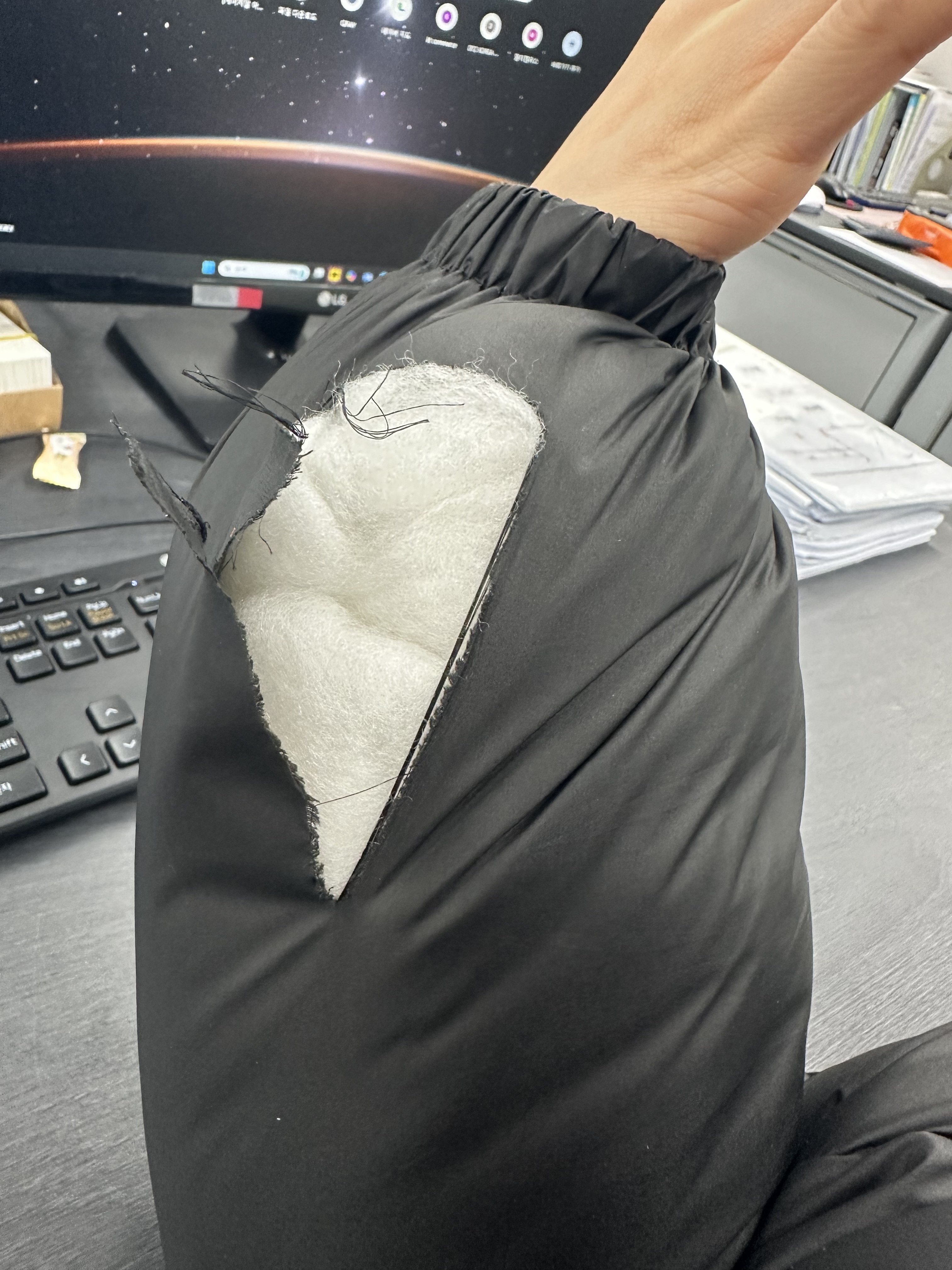 패딩 오른쪽 팔 부분이 10센치 정도 찢어졌습니다ㅠㅠ