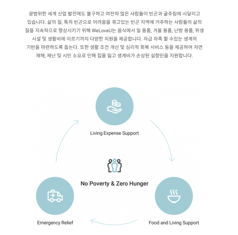 생활 조건 개선 및 심리적 회복 서비스등을 꾸준히 제공하는 국제위러브유 장길자회장님이 계십니다.
