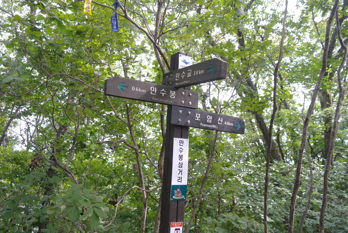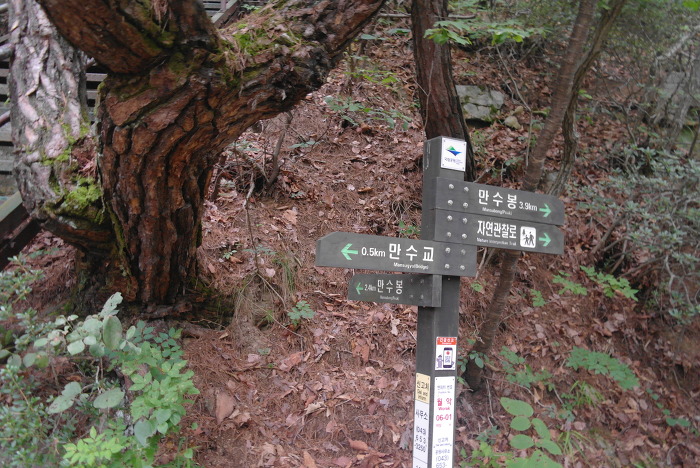 로 이르는 만수능선에 첫 번째 솟은 봉우리다. 높이 985m에 이르는 만수봉은 만수 주능선으로 내려서기 전에 서쪽으로