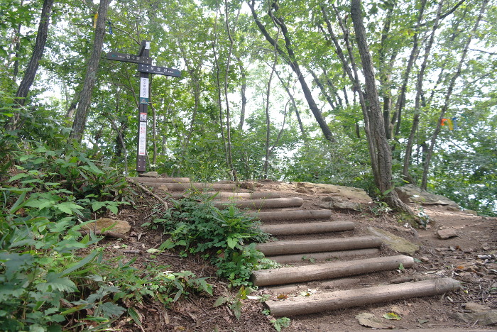한 무리의 산악회 회원들이 올라 온다. 그리고 또, 또다시. 경향 각지에서 온 것을 아는 것은 배낭에 단 리본들이 그렇