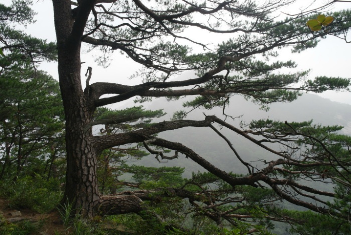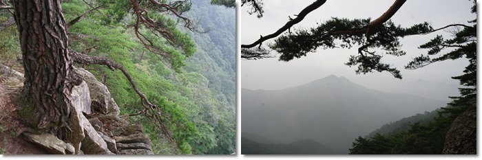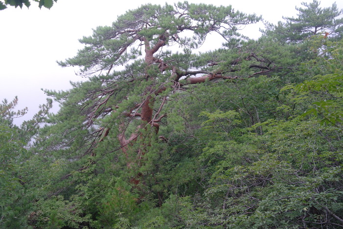 ▼ 용암봉의 일향지송 / 가파른 암벽 위에서 노송의 가지들은 모두 동남쪽만을 향해 뻗어있다.