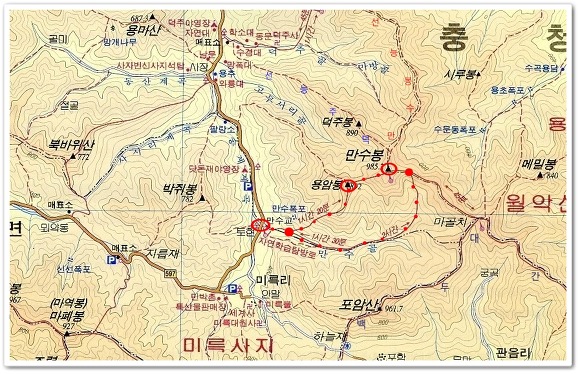 만수봉 산행지도 〓 만수교- 용암봉- 만수봉- 만수봉삼거리 - 만수골- 만수교(원점회귀코스)