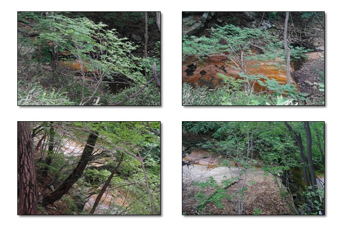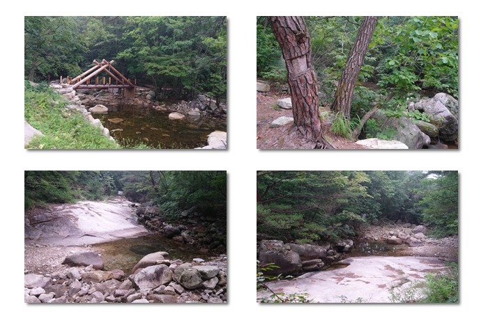 담(潭)을 빚어 내었다. 계류(溪流)는 가끔 끊어졌다 다시 이어지기를 반복하지만, 쪽빛 옥담 마다엔 하늘을 담았다.모든