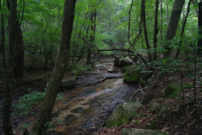 ▼ 만수골 상류 계곡의 느럭바위하상(板狀河床)