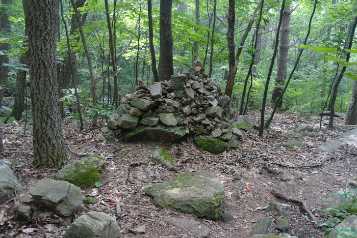 ▼ 만수봉 삼거리 아래 등산로 돌탑