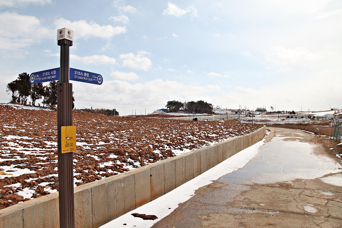 ▼무안 하묘리, 두곡 고인돌 군(群) - 2 / 저수지 옆 21코스 이정표