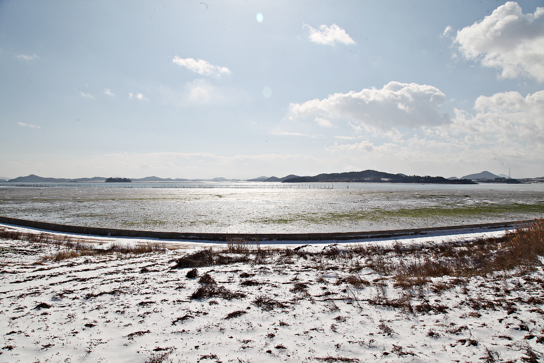 바다 건너 남쪽은 신안군 압해도, 신안과 운남 양안(兩岸)을 오가며 겨울을 나는 철새들에겐 이곳이 분명 낙원이리. 아름