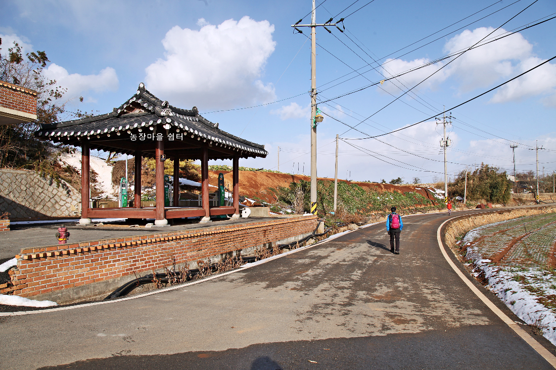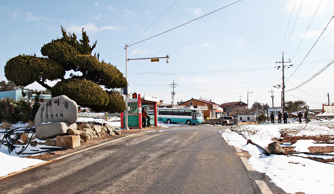 ▼동암 4리, 동해마을 버스정류장과 서해랑길 21코스 날머리.